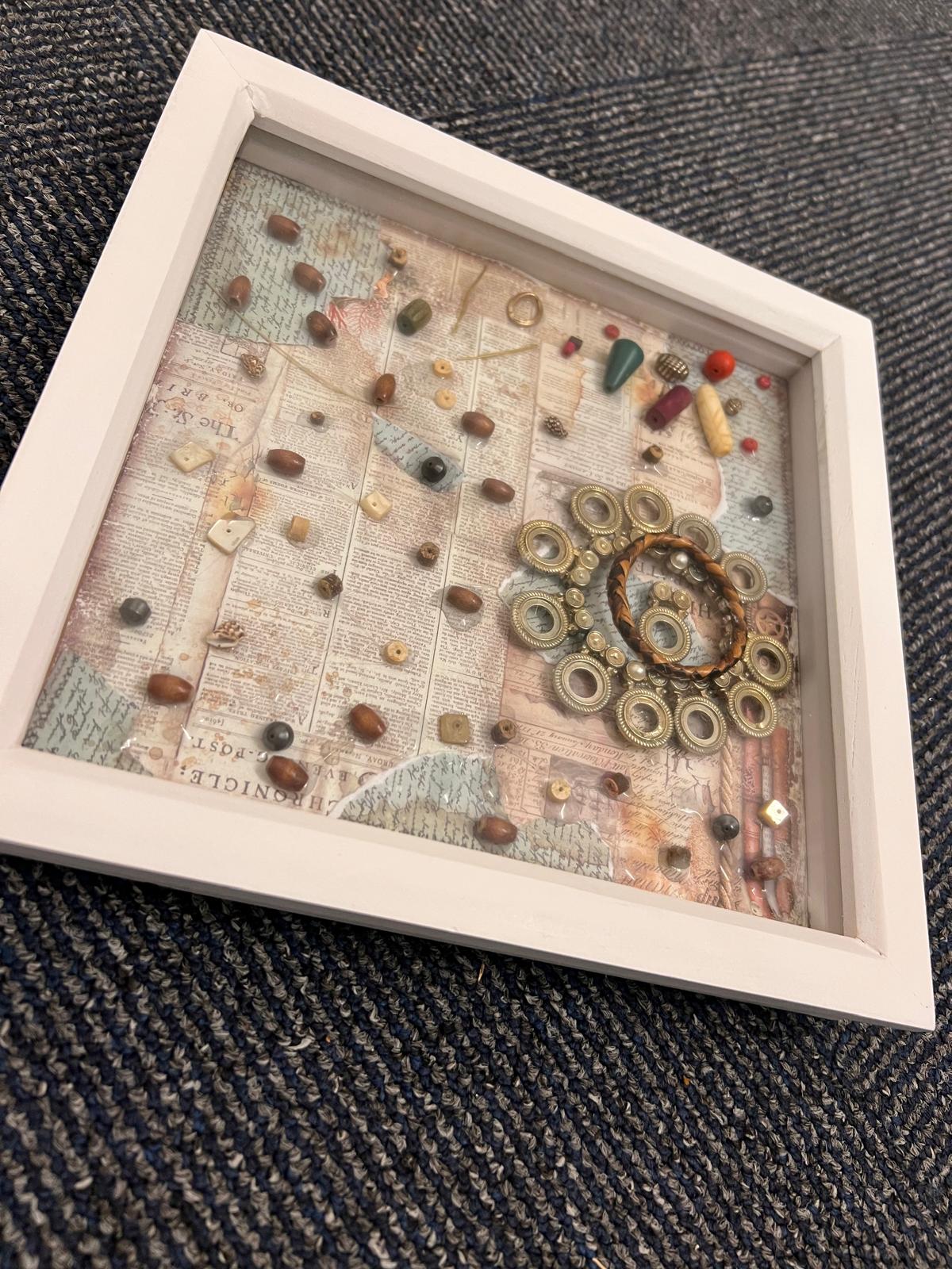 We’re delighted to share these fantastic photos from iD Derby, one of J16’s valued alternative provision partners. Students attending iD Creative Wellbeing sessions have been working with recycled jewellery to design and create a stunning framed project.